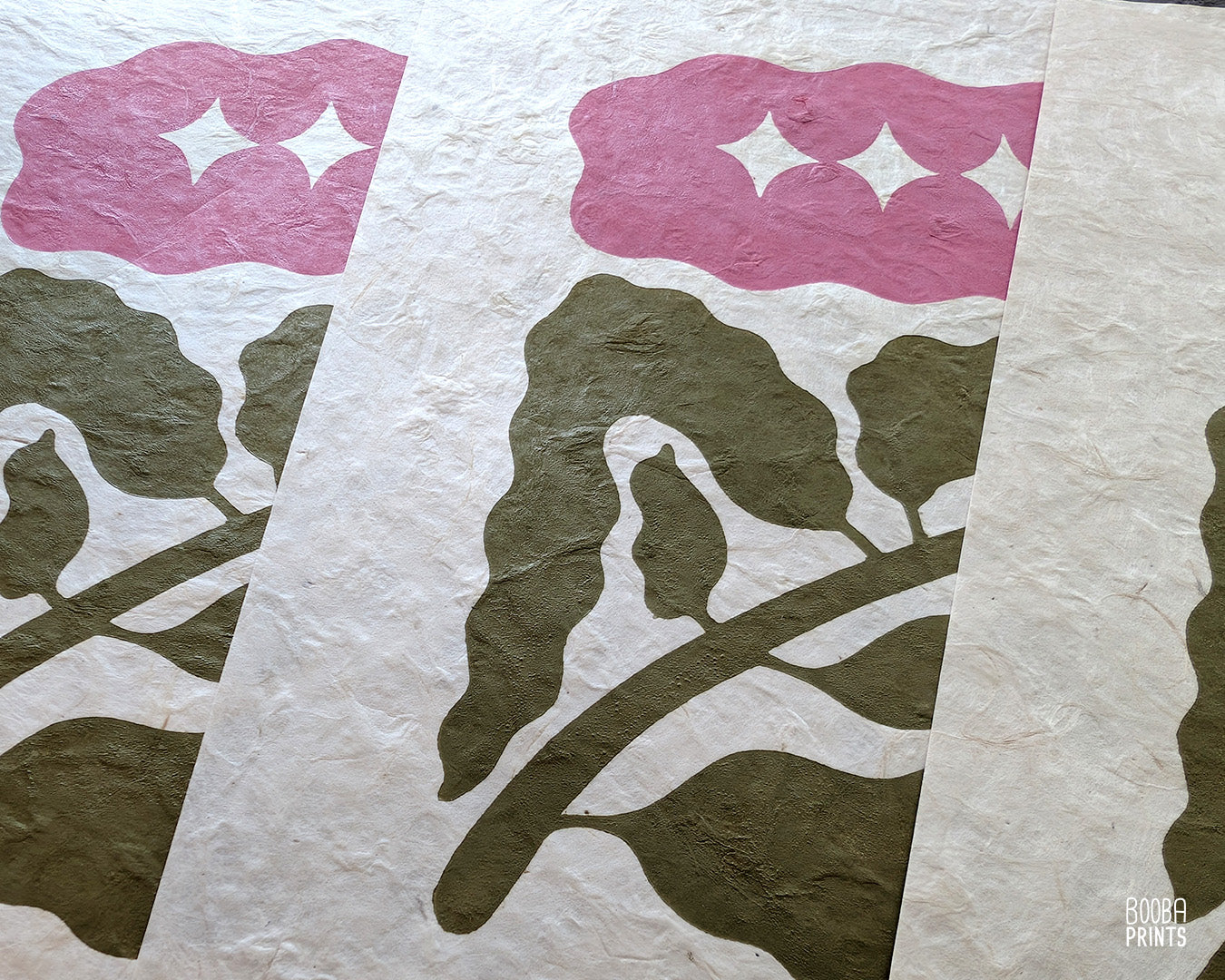 ⭐ Add a thoughtful touch to your space with this mini handmade linocut print, featuring a single flower printed in green and pink ink. Carved and printed by hand using traditional block printing techniques, each piece has its own character and texture.