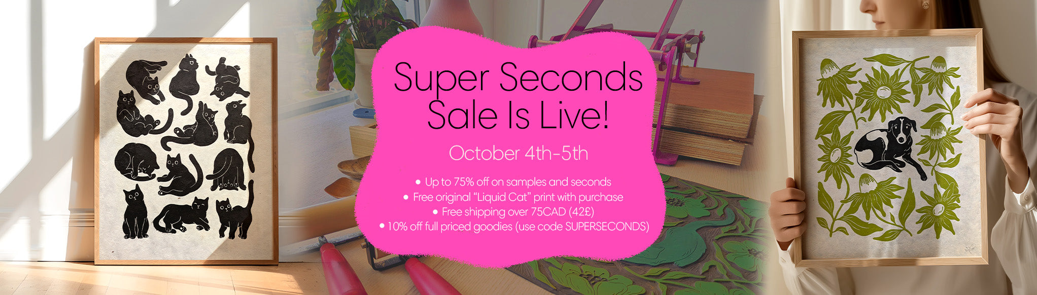 The day is finally here! Enjoy up to 75% off on this catalog of beautifully flawed prints and samples, as part of Super Seconds Festival. Decorate your walls with fresh artwork, and get some shopping done early before Christmas, what a thrill! It's a wonderful opportunity for me to give a second life to some of my artwork and for you to get original prints in a bargain price. Win-win!