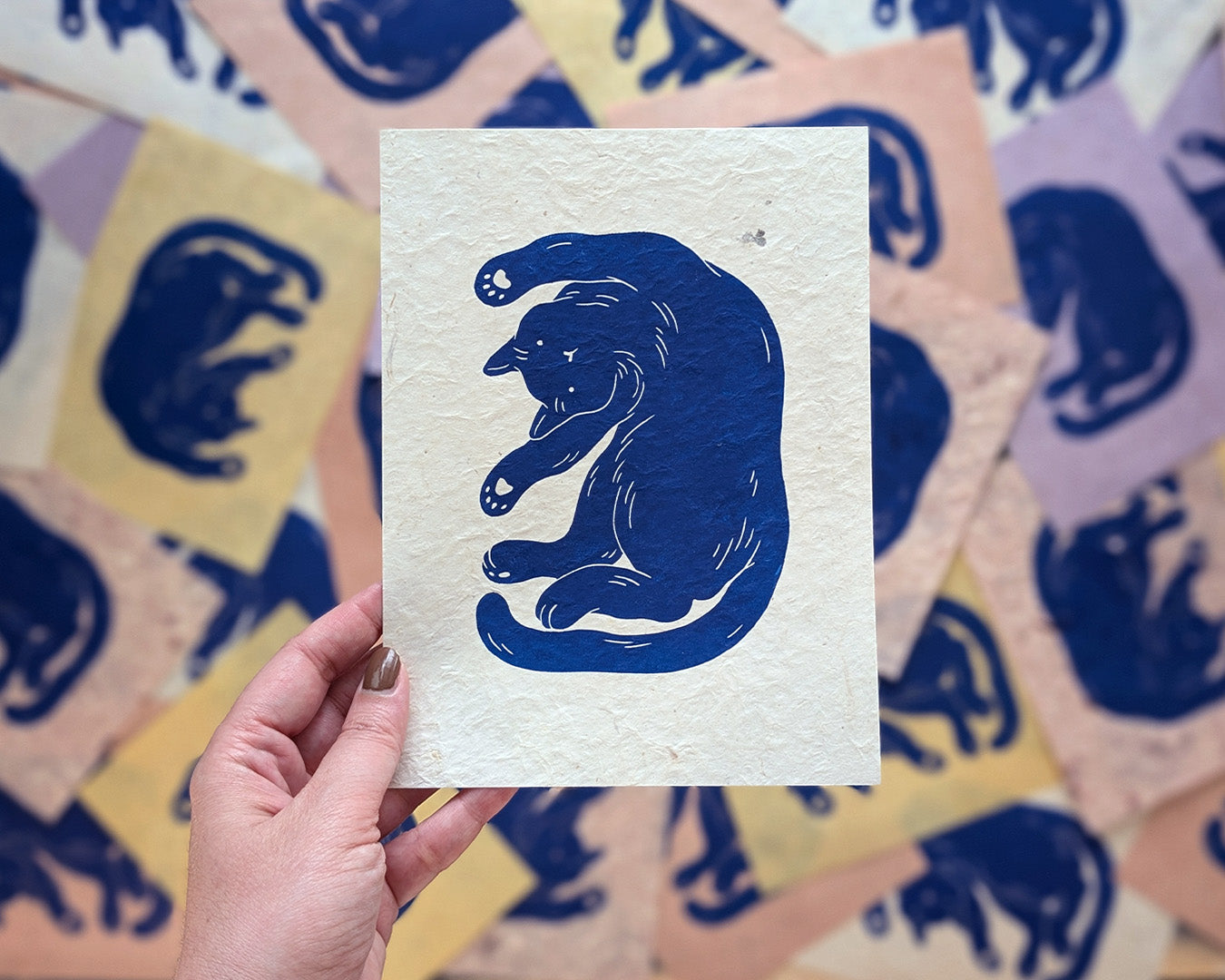 Sleeping Black Cat Linocut Print Sample ✷ 45% Off!