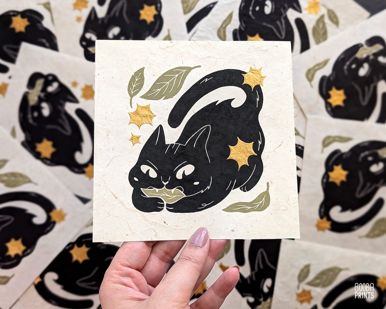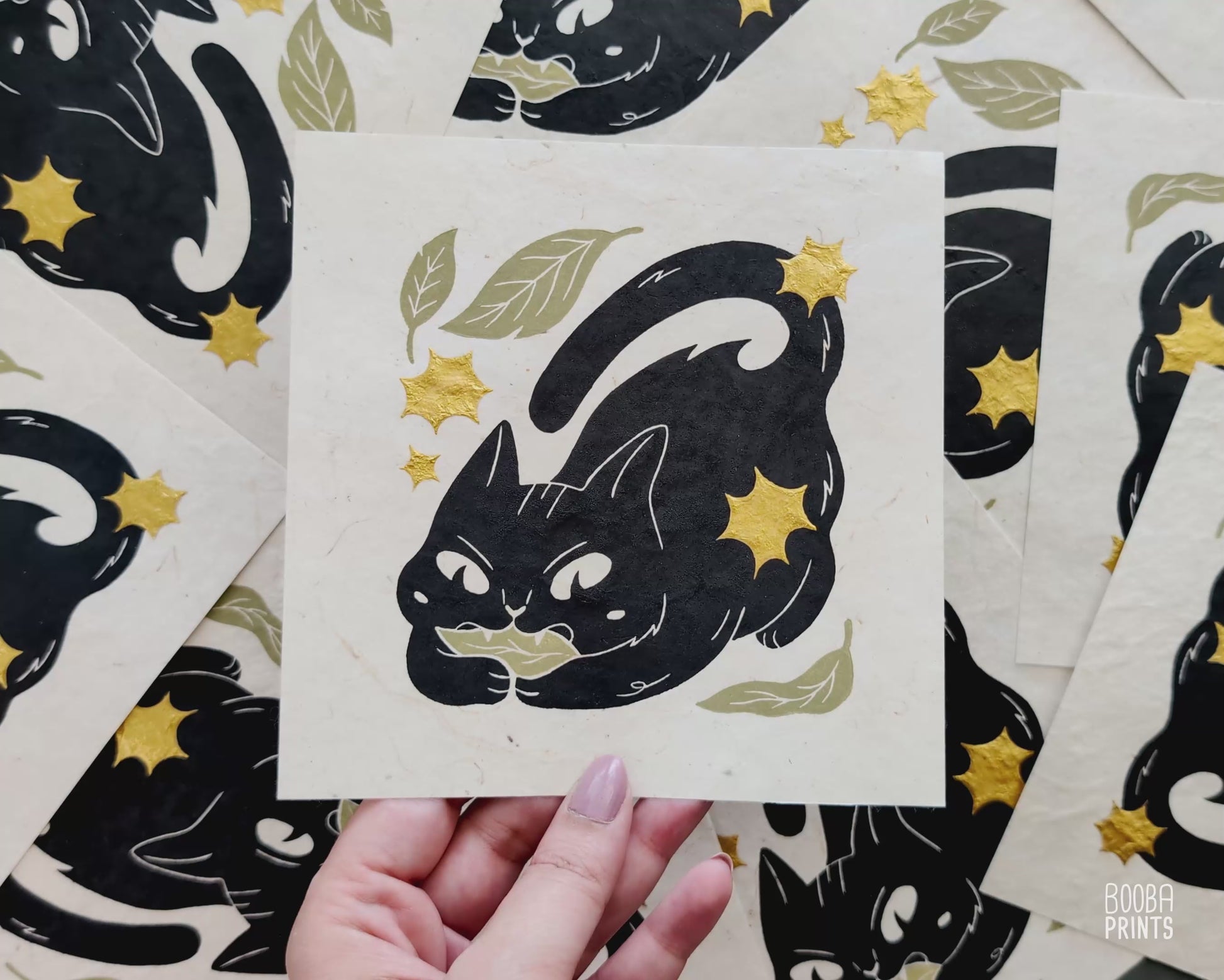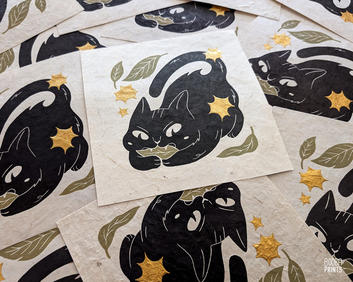 Perfect for cat lovers, plant enthusiasts, and collectors of original printmaking.