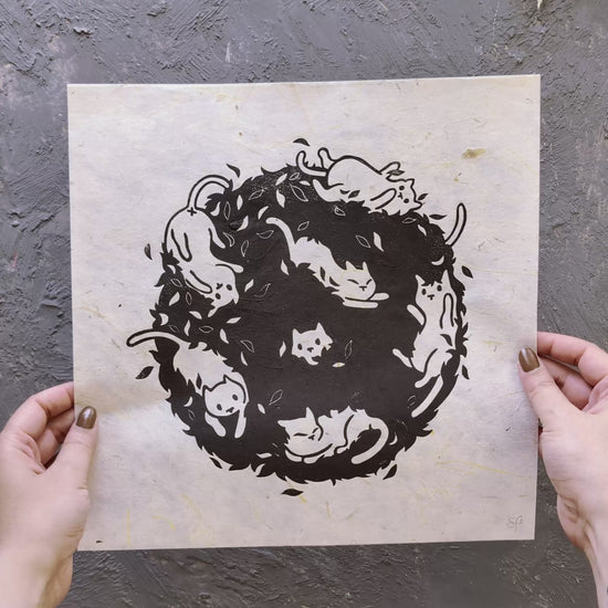 Cats In A Bush Linocut Print ✷ 60% Off!