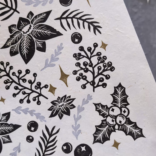 Christmas Flowers Linocut Print ✷ 60% Off