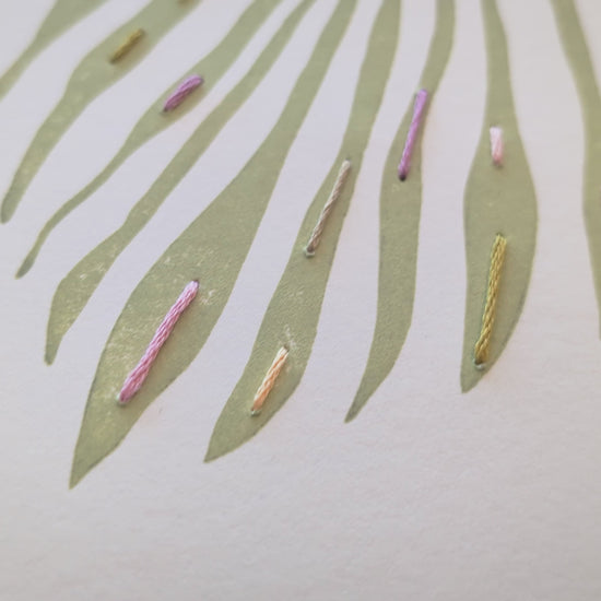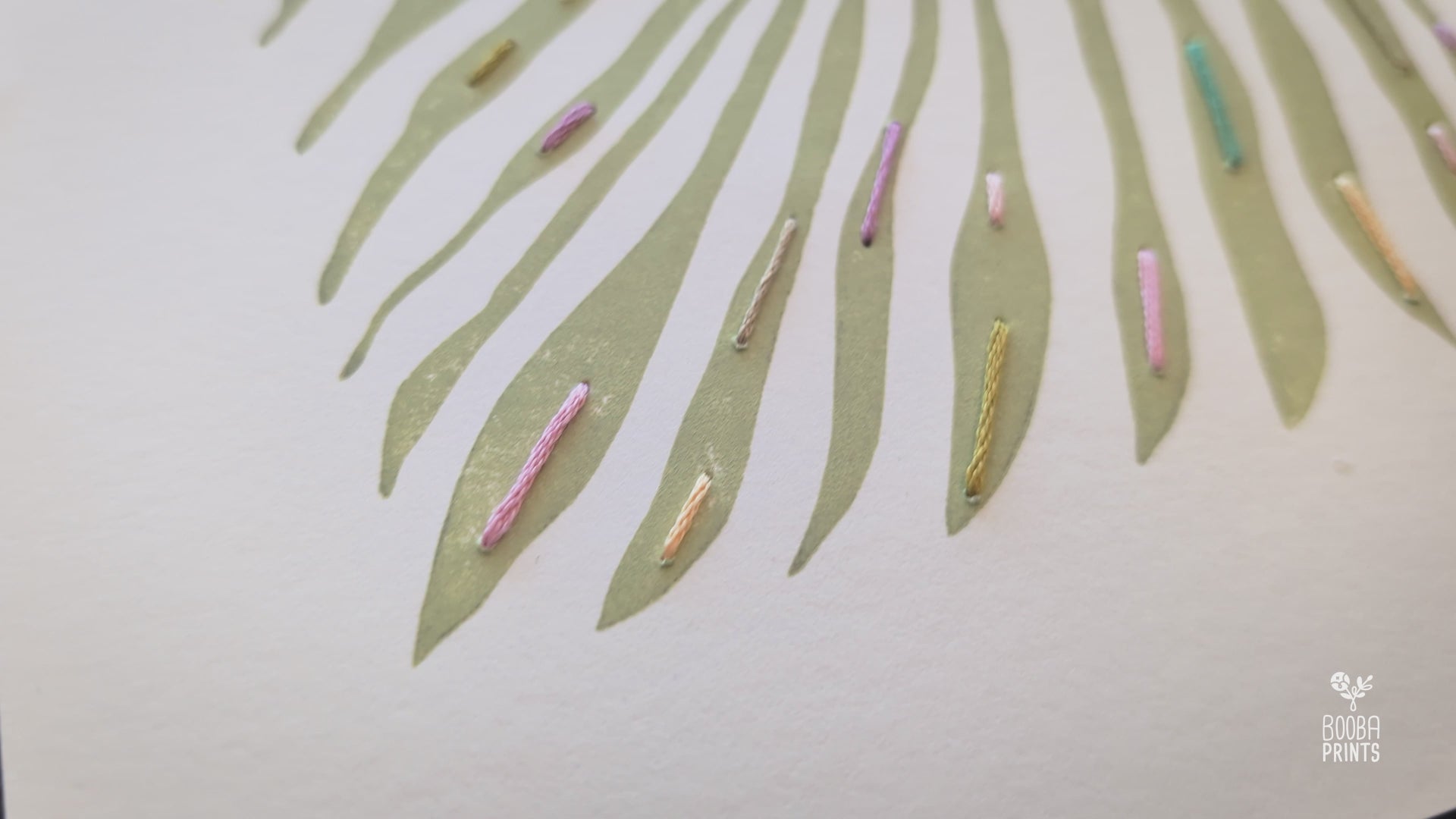 ⭐ My original minimalist linocut print of light green plant, embroidered with colorful embroidery flosses. If you love minimal style this is the print for you (: